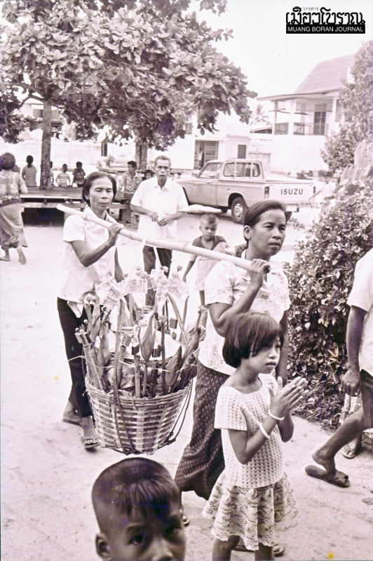 จากภาพชาวบ้านยกหมฺรับไปวัด เนื่องในงานบุญสารทเดือน 10 ที่จังหวัดนครศรีธรรมราช ภาพถ่ายโดยอาจารย์ศรีศักร วัลลิโภดม เมื่อปี พ.ศ. 2521