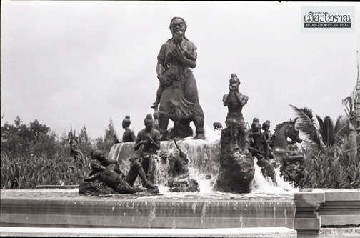 สระอโนดาตมีรูปปั้นนางกินรี ภาพถ่ายเมื่อปี 2520 (ที่มา : ศูนย์ข้อมูลเล็ก-ประไพ วิริยะพันธุ์)