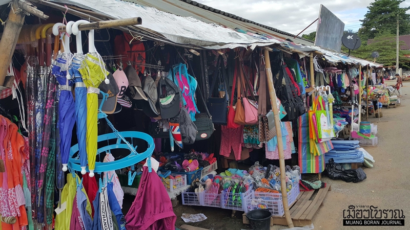 ร้านเสื้อผ้าและกระเป๋ามีอยู่หลายร้านในตลาดขายสินค้าที่เมืองเงิน